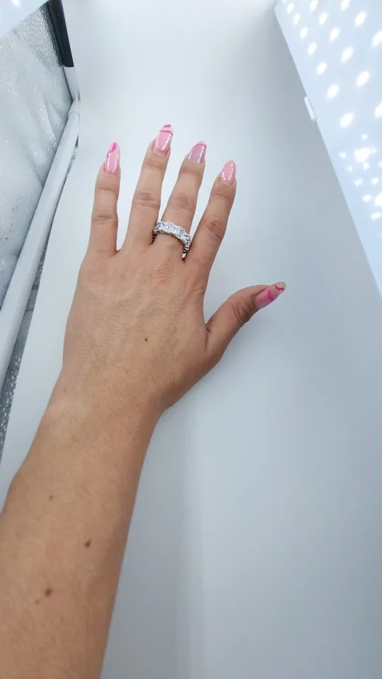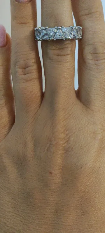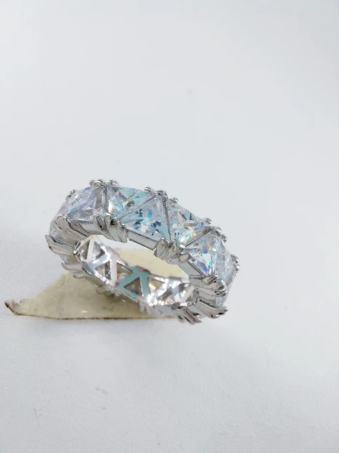 Make a bold statement with Opulent Gemz's Eterna Ring , a ring that shines from every angle. Featuring a continuous row of dazzling triangular-cut stones, this band delivers unmatched sparkle. The unique cut ensures a radiant light, giving the appearance of fine diamonds without the premium price tag.